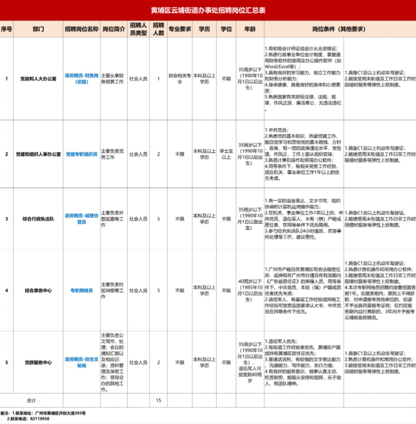 (二)招聘具体要求。(详见附件1.黄埔区云埔街道办事处招聘岗位表)
