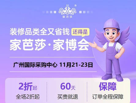2025年广州家芭莎家博会将于11月21-23日在广州国际采购中心盛大启幕!本届家博会展出内容涵盖家电厨电、家具软装、卫浴陶瓷、地板门窗、橱柜衣柜、涂料吊顶、基础建材、装修公司等,2-3天内满足业主装修一站式采购需求,帮助业主节省时间,家装采购一次到位。